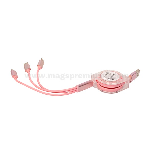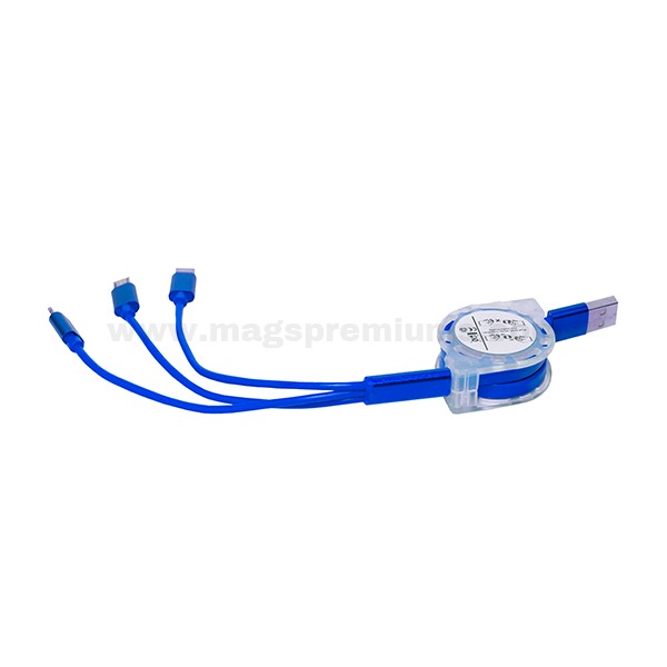 Bulk Logo Printed USB Charging Cable — retractable 3-in-1 cable with multiple connectors, perfect for corporate gifts, promotions, and giveaways.