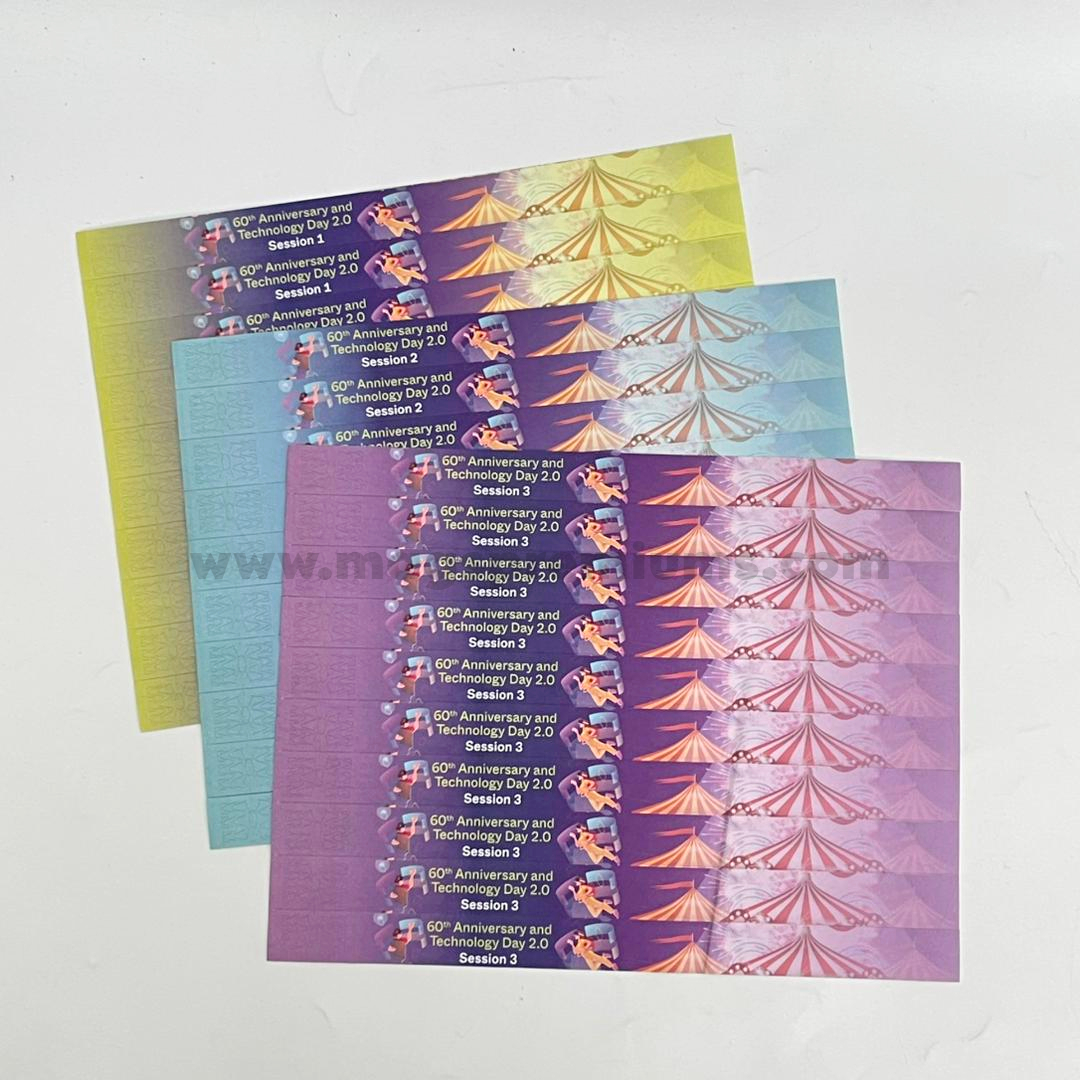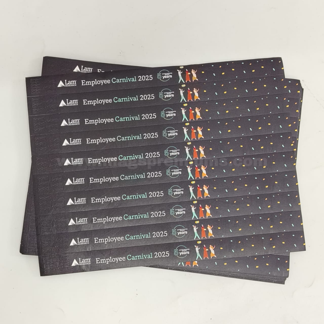 With professional tyvek wristband printing, we produce high-quality printed tyvek wristbands and custom printed paper wristbands tailored to your event needs. Logos, text, numbering, and QR codes can be applied neatly, while full color tyvek wristbands help your branding stand out clearly. These custom printed event wristbands provide both visual impact and practical event management.