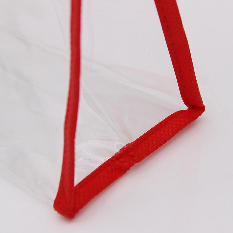 A large transparent PVC Pouch non woven binding with text in a hardwearing vinyl. They are multi functional and can be used for makeup, traveling, pencil case, storing arts and crafts, general organization! You can choose from a range of font colors. This pouch printing is 100% transparent with a soft touch and non woven binding. This is a great accessory to go on your travels for a business trip or any occasion.