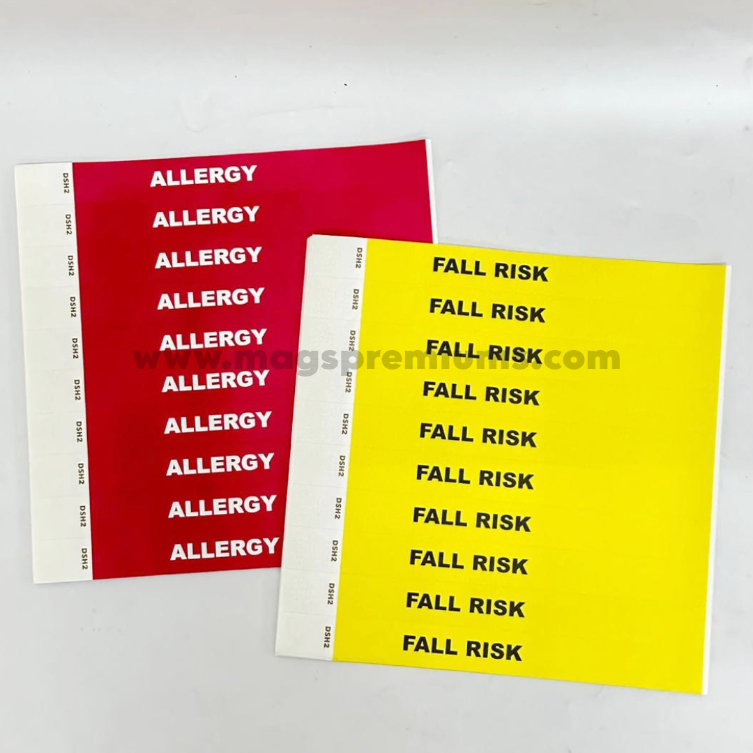 Enhance patient safety and communication in healthcare settings with our fall risk wristband. This highly visible and durable wristband is specifically designed to identify patients at risk of falls, ensuring that caregivers and staff are promptly alerted. Made from comfortable, skin-friendly materials, this fall risk bracelet is adjustable to fit securely while providing easy recognition for better risk management and improved care quality.