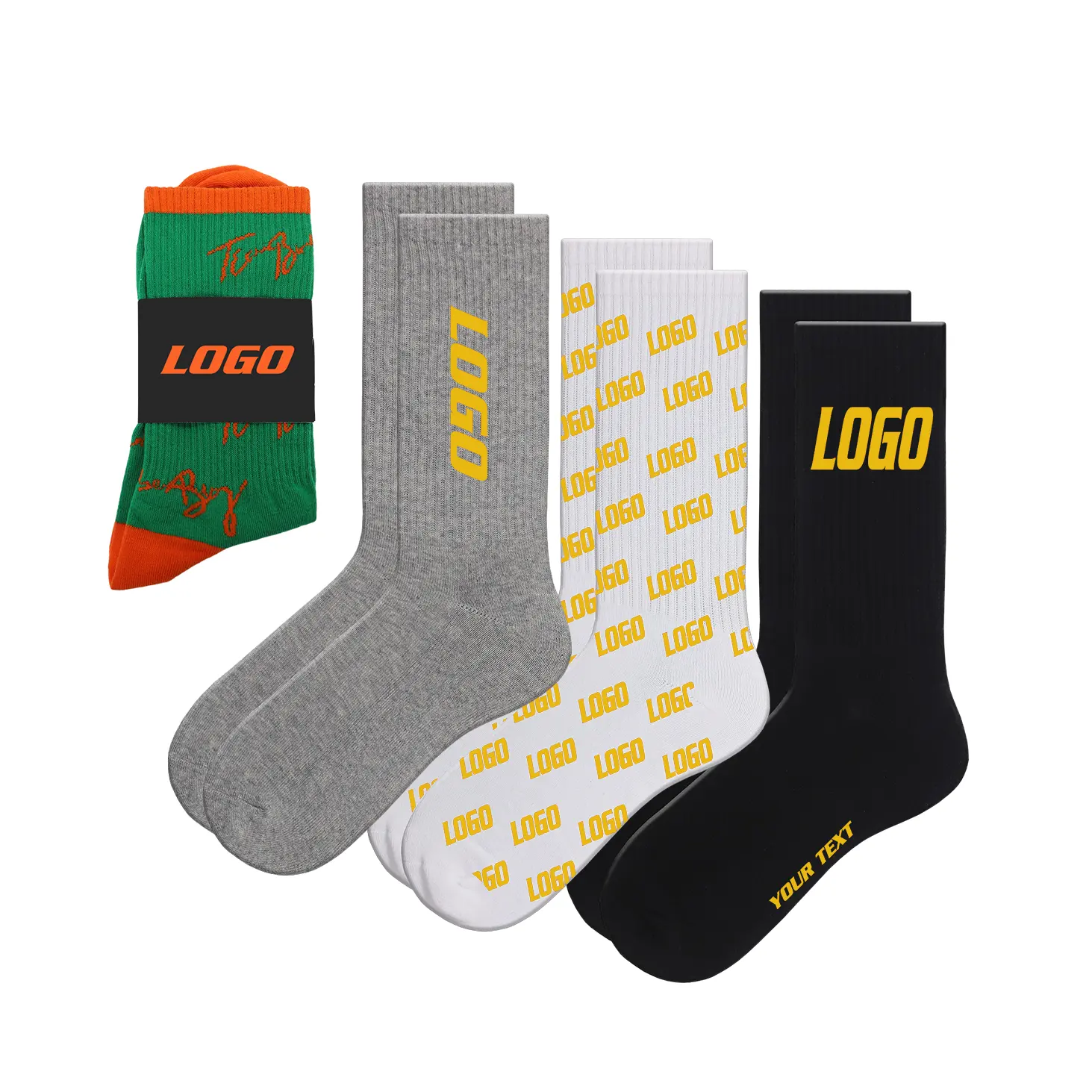 For businesses, teams, and events, we offer custom socks bulk options, allowing you to order large quantities at competitive prices. Our custom socks wholesale service ensures cost-effective solutions without compromising on quality, making it ideal for corporate giveaways, sports teams, and retail brands. With a variety of materials, colors, and styles available, you can find the perfect personalized socks to match your branding needs.